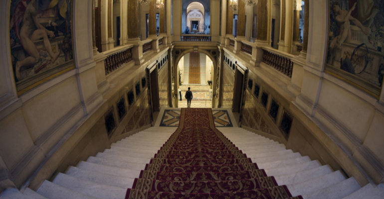 Внутреннее убранство мэрии выполнено в полном соответствии с роскошным стилем ампир: залы заливают светом многоярусные хрустальные люстры, стены покрыты фресками, потолки – лепниной и росписью.