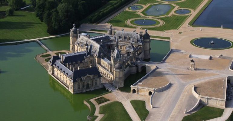 Расположенный к северу от столицы Франции, замок Шантийи являлся когда-то крупнейшей аристократической резиденцией страны. Построенный в начале века коннетаблем (главой армии) Монморанси, он впоследствии перешел к принцам Конде. Романтичный замок, окруженный водой и прекрасным парком, сочетает в себе черты готики и барокко.